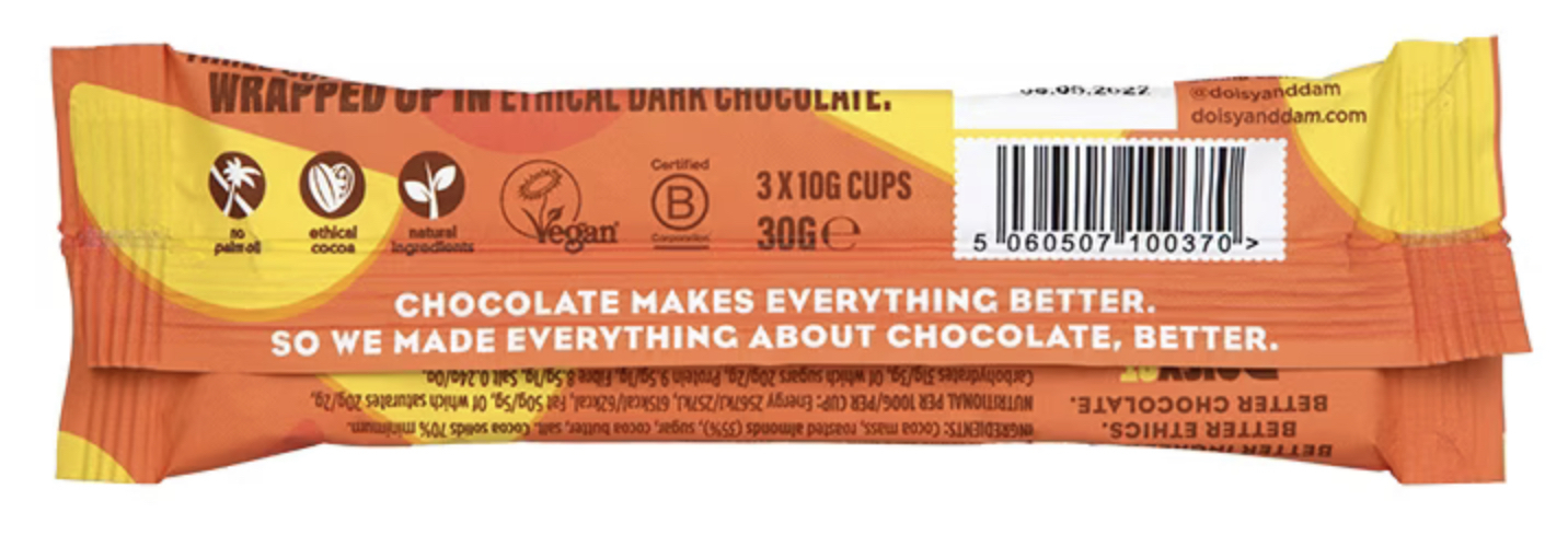 Doisy & Dam Vegan Chocolate and Almond Butter Nuttercups 27g