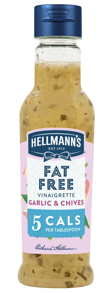 True to tradition, Hellmann's Fat Free Salad Dressing is made using quality and sustainably sourced ingredients. Perfect for those that like to keep it light, this garlic and chive dressing is the newest way in which Hellmann's is helping people to enjoy good, honest food for the simple pleasure it is, without worry or waste. And with only 5 calories per tablespoon you don't need to worry about your waist line.