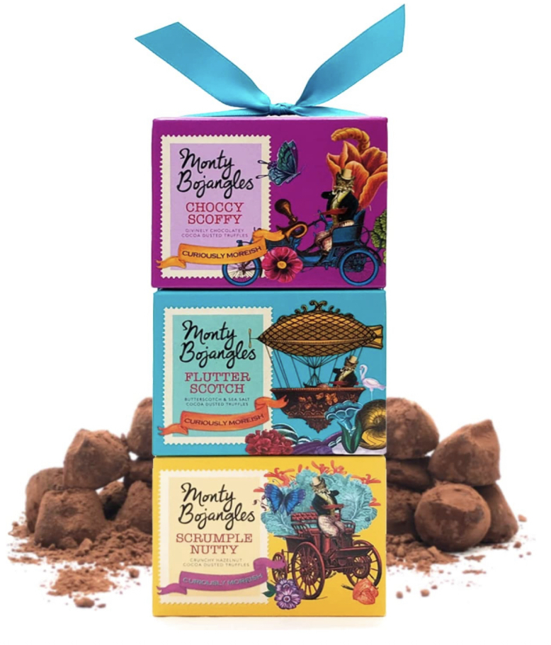 Monty Bojangles Cocoa Dusted Truffles Gift Tower - Choccy Scoffy, Scrumple Nutty, Flutter Scotch 3 x 100g Pack