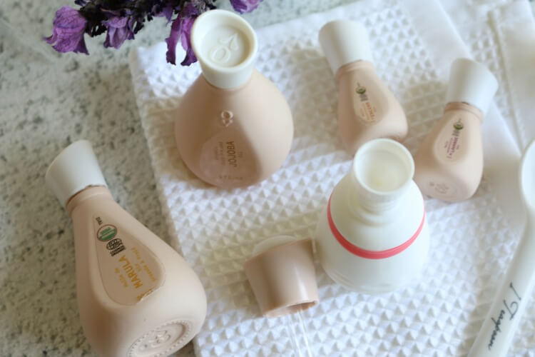 The set contains various oils that intensively care for the skin.