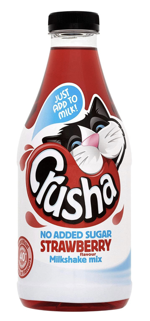 Strawberry flavour no added sugar milkshake mix with sweeteners. A great way for kids to drink more milk, Crusha is perfect after school with a biscuit, in the morning with cereal, or even after sports and games. Just simply mix 1 part Crusha to 7 parts cold semi-skimmed milk and serve. Each bottle is 1L and makes approximately 40 portions. - Mix 1 part Crusha to 7 parts chilled semi-skimmed milk and serve. Making flavoured milkshakes is as simple as that.
