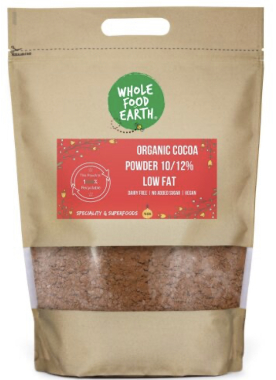 Cocoa Powder Organic 10-12% Low Fat by Wholefood Earth 250g