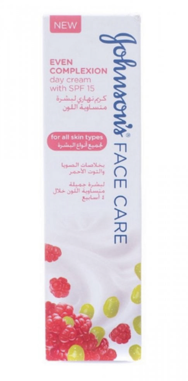 Johnsons Face Care Even Complexion Day Cream helps maintain an even skin and enhances your radiance, smoothness and brightness. Improves the appearance of skin blemishes, spots and dark marks.