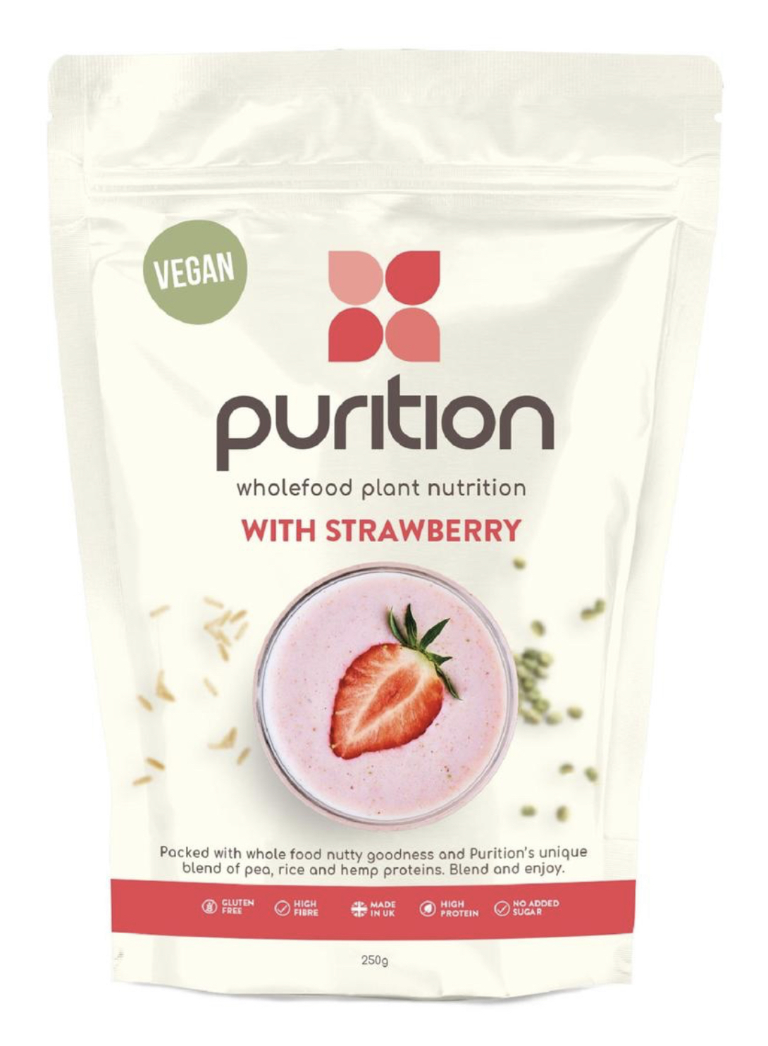 Purition Strawberry Vegan Wholefood Nutrition Powder 250g