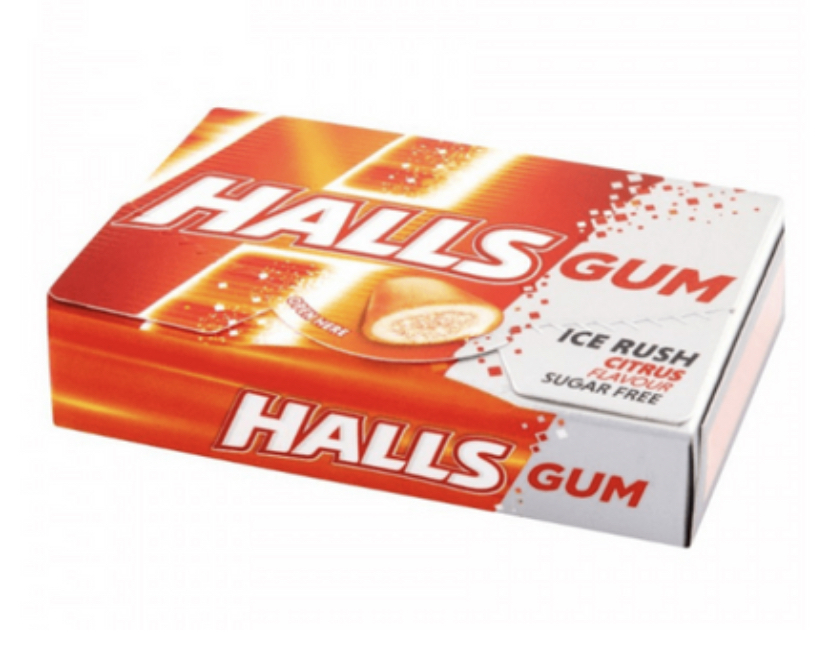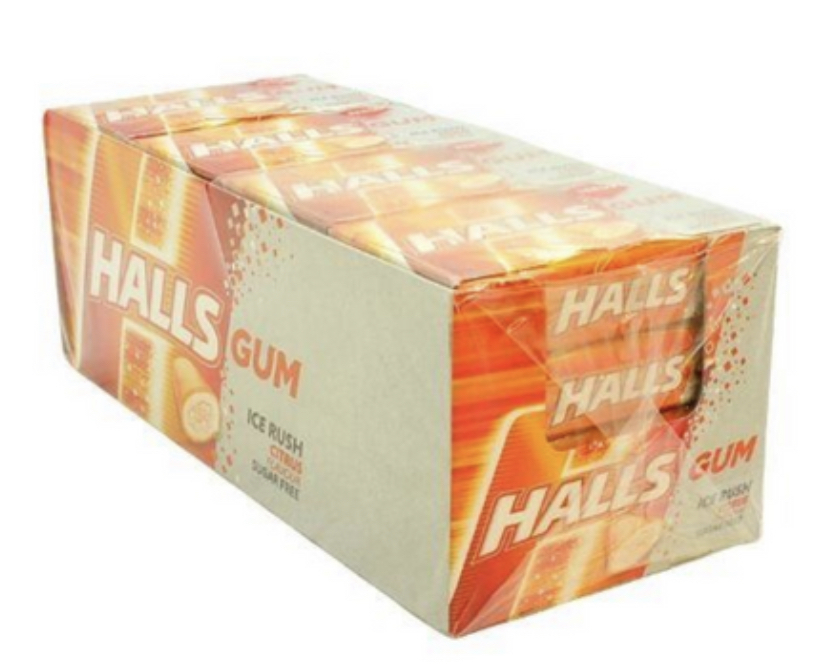 Halls Ice Rush Citrus Flavour Chewing Sugar-free Gum 3 x18g or Case of 16